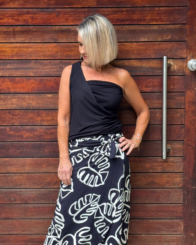 The TRACY top features a boat-neckline and has a batwing shaped sleeve, which allows the top to be worn in a variety of different ways.