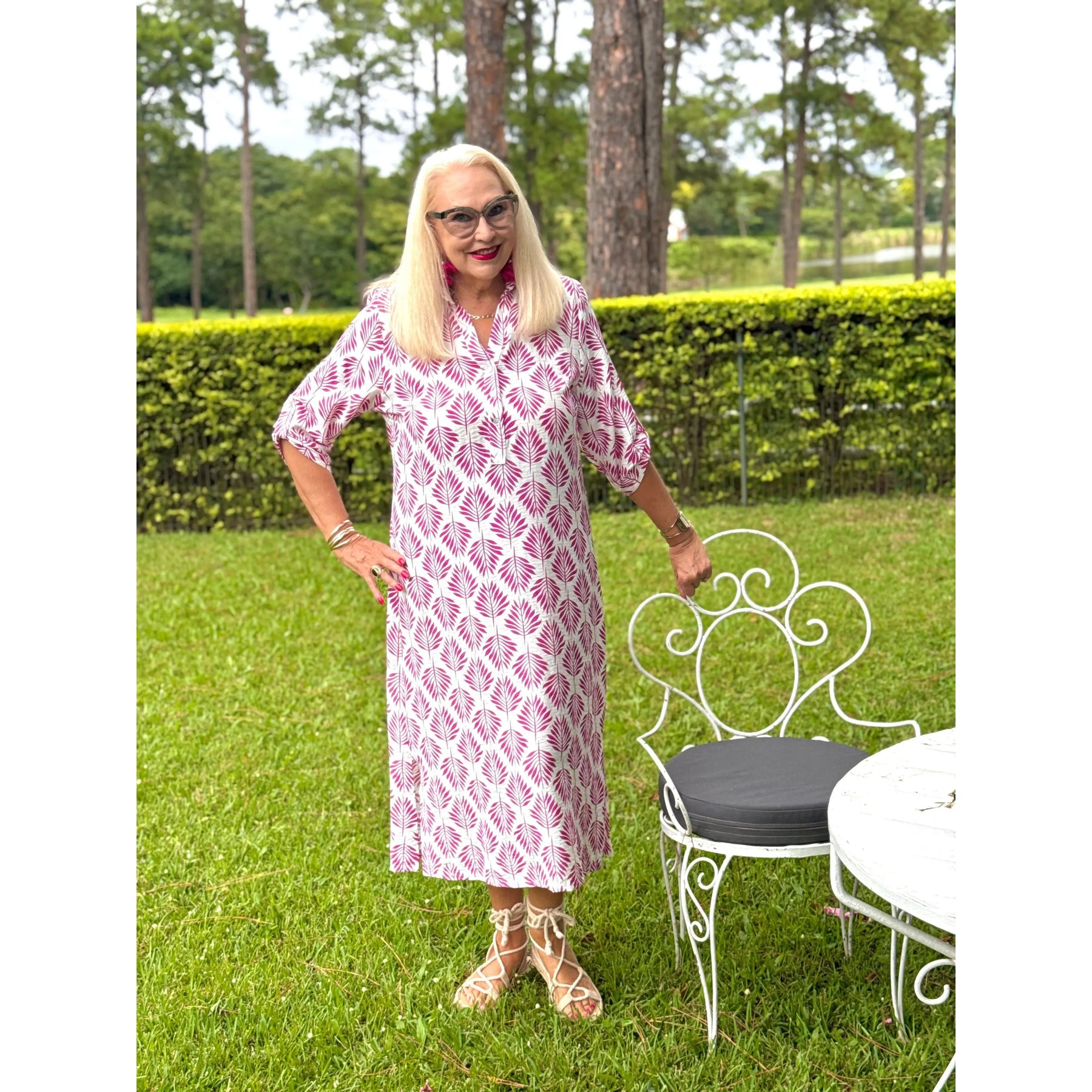 Eden is a calf length shirt dress that boasts a comfortable fit and a collared v-neckline, with button detailing. The sleeves can be worn straight or generally are clasped with a button, allowing for versatile sleeve options. The two slits on either side allow for easy movement, and is extremely comfortable, stylish and functional.