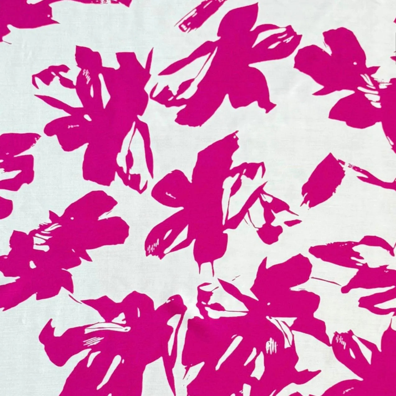 Fabric is a pretty pink and white floral viscose which is cool and breathes well. This length is slightly shorter than normal and sits mid calf.