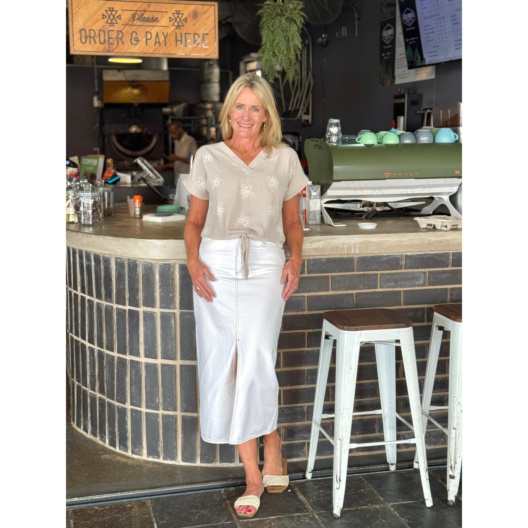 This creamy coloured May is in an airflow fabric so is non-crease and perfect travelwear.