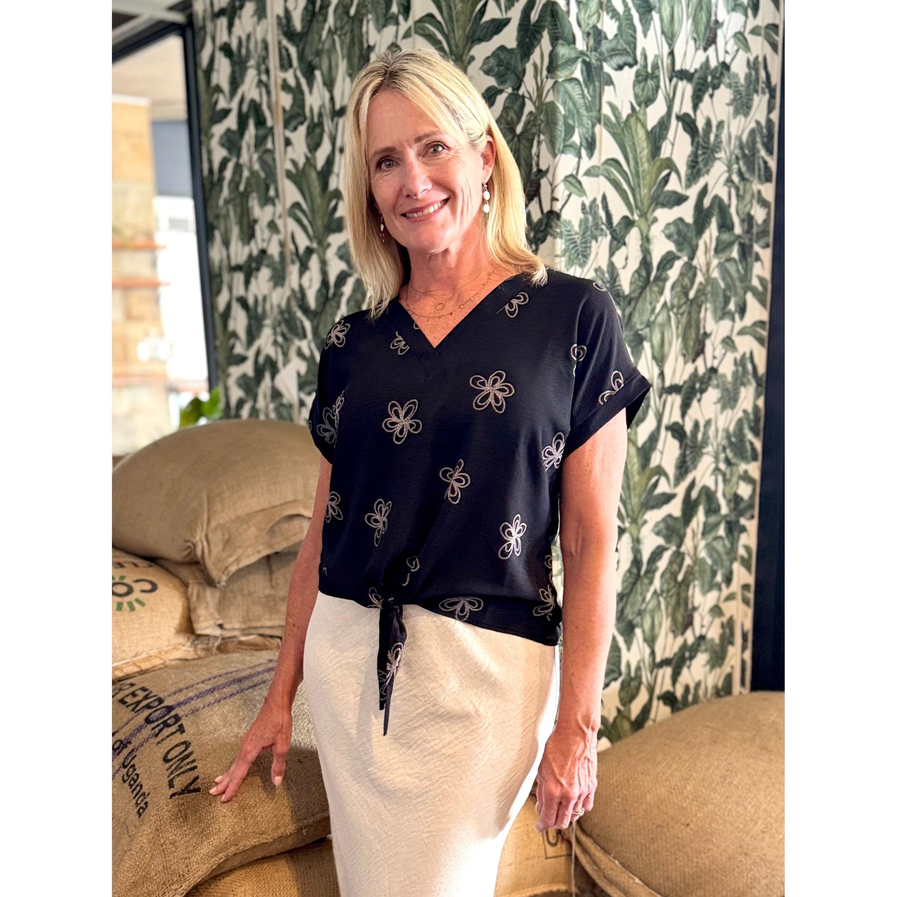 This stylish V-neck top features rolled sleeves and a loose tie, allowing you to adjust the length to suit you. Perfect for any occasion- from nailing that work presentation to a night out with the girls.