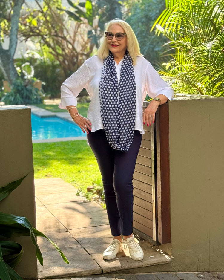 Slightly smarter, tapered stretch pants that have a flush front and elasticated waistband at the back. The pants also feature a slit at the ankle and double reinforced pockets at the back(especially for the golfers).