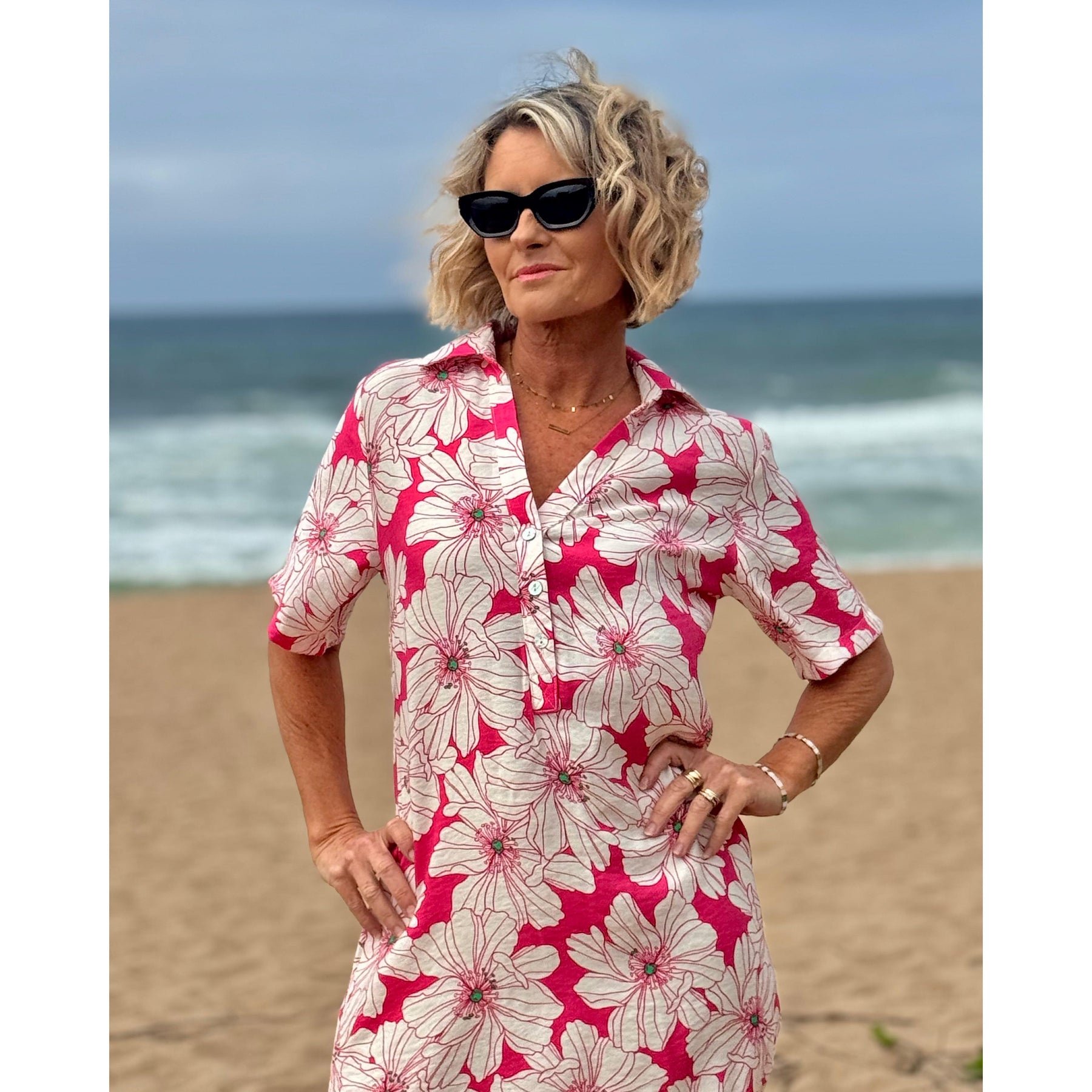 Tatum is a short sleeved comfortable shirt style dress with small slits on either side