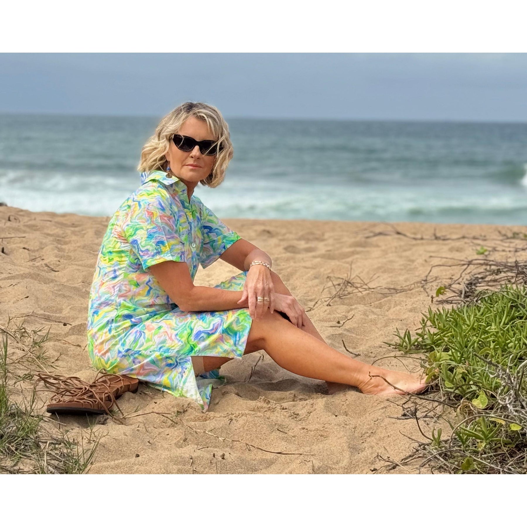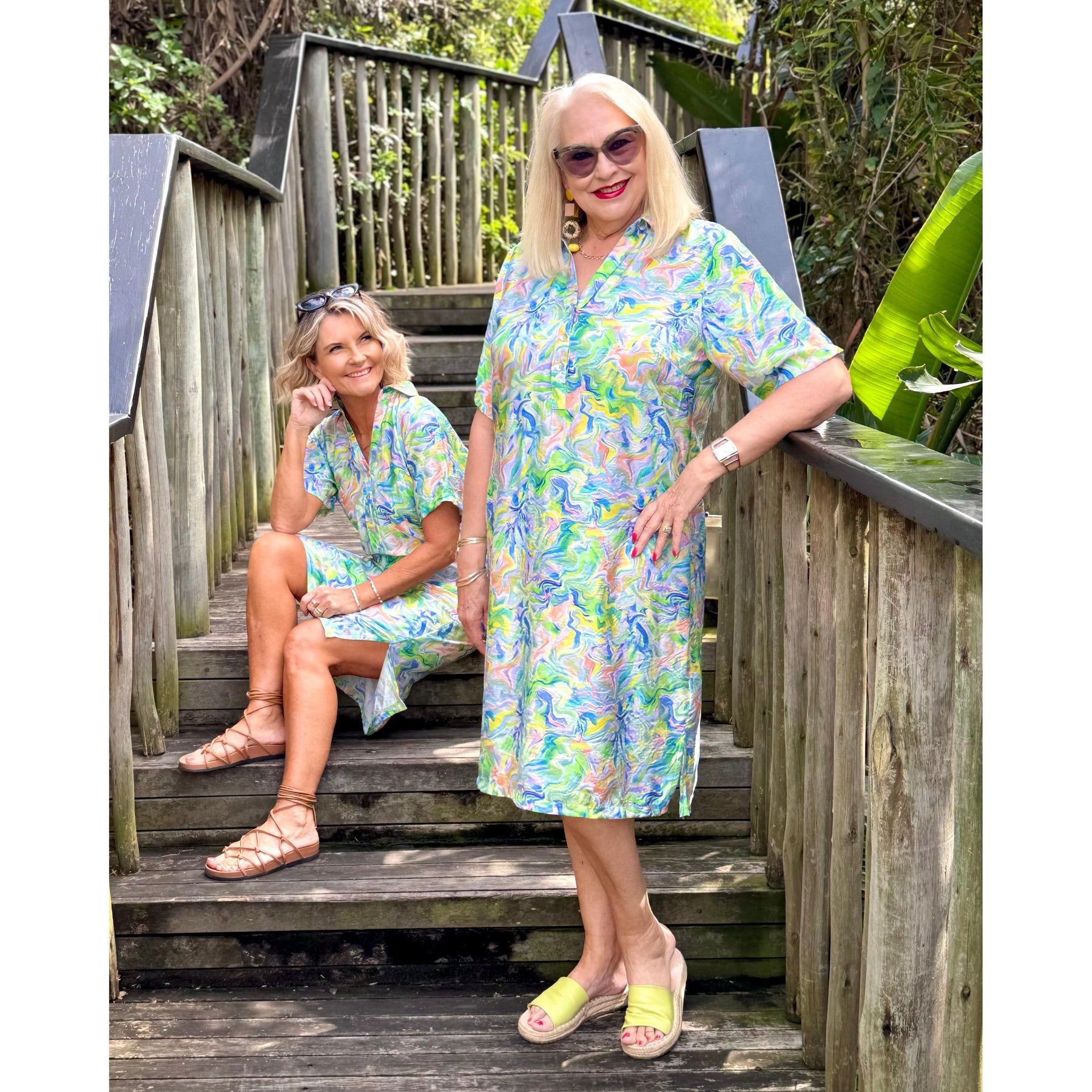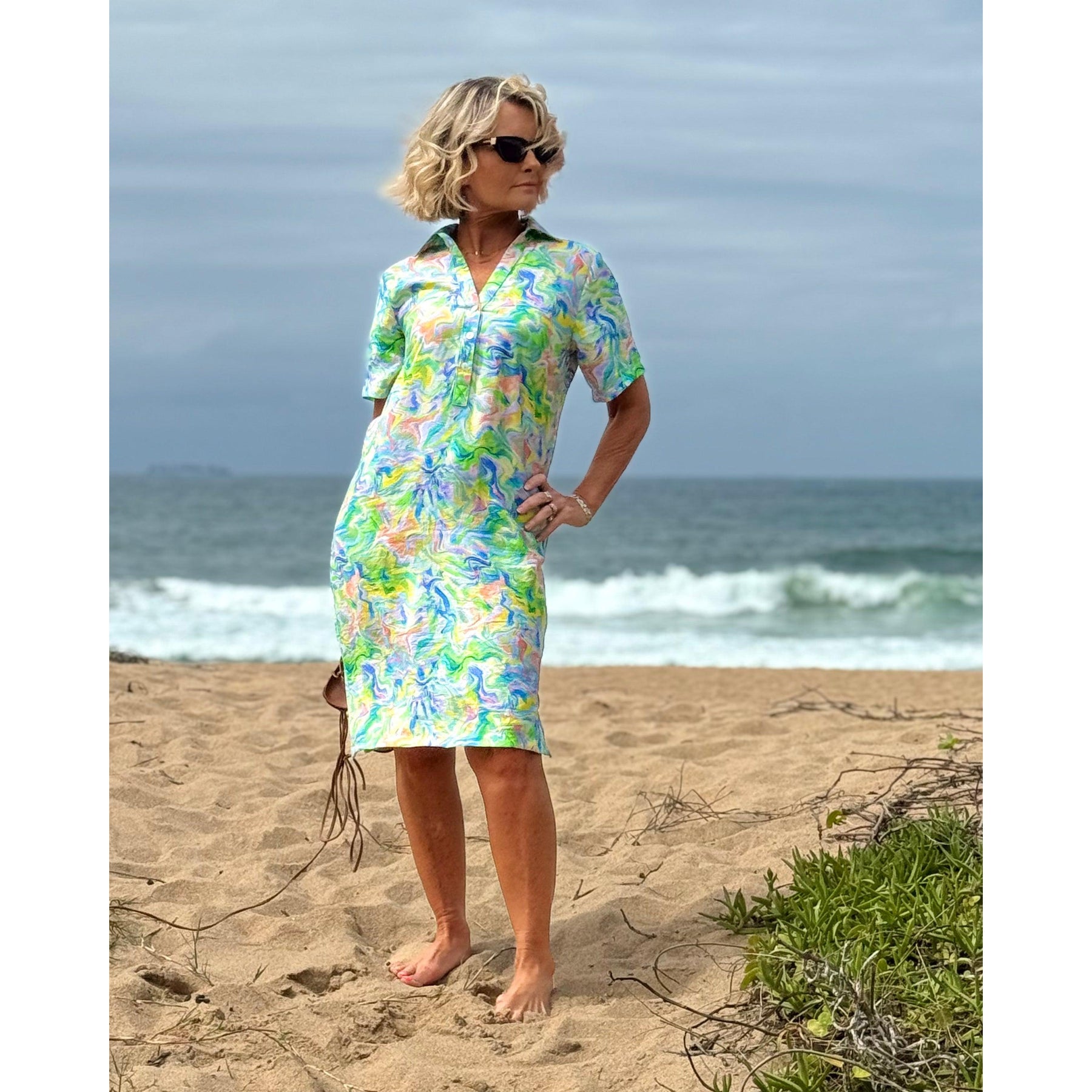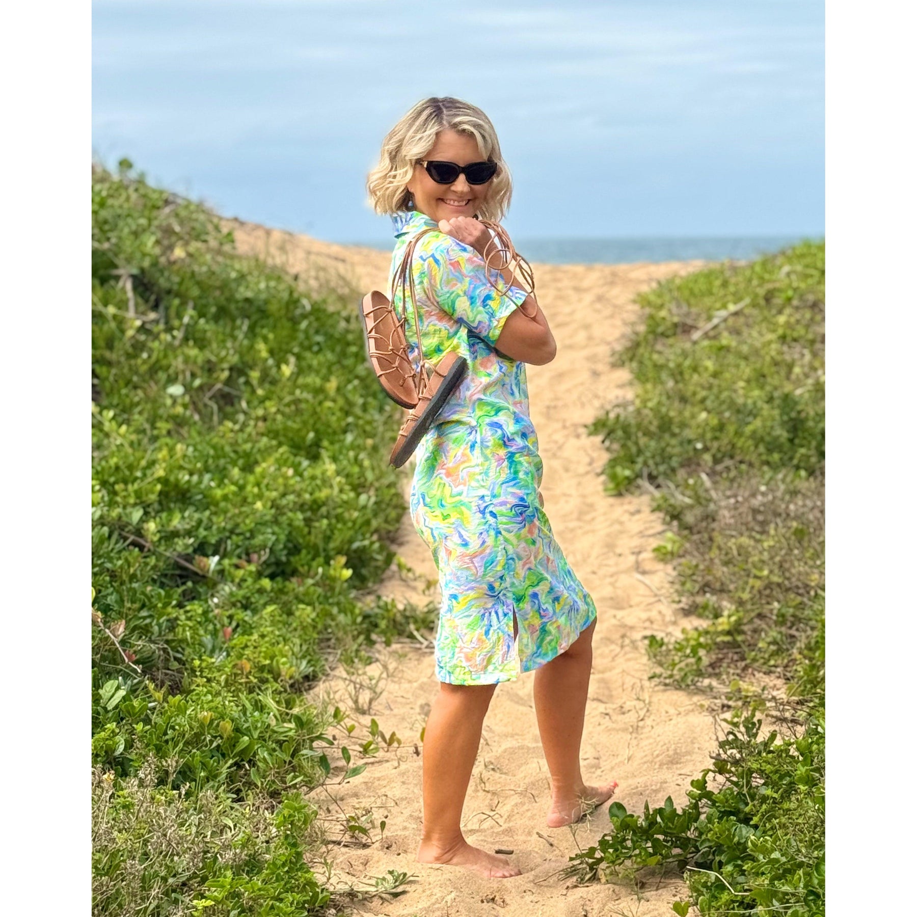 Tatum is a short sleeved comfortable shirt style dress with small slits on either side