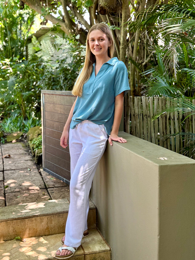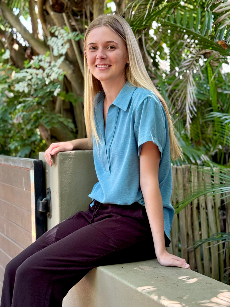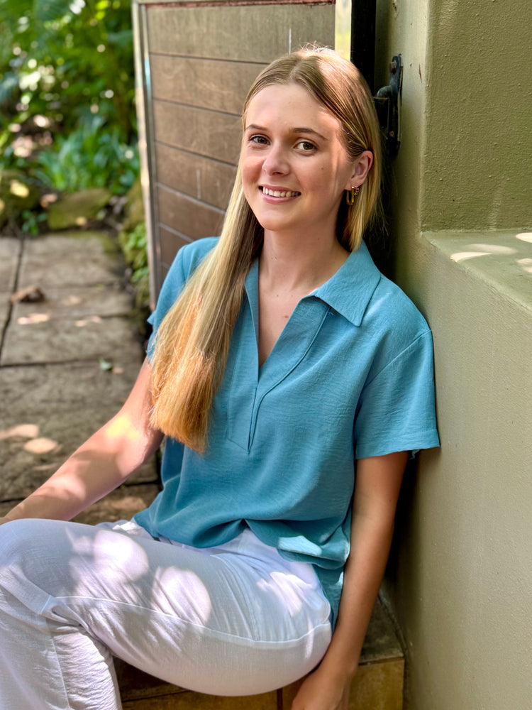 Short sleeves with a neat collar offers a refined yet relaxed look. A gently scooped hem at the front and back for a flattering fit, and easy tucking or layering.