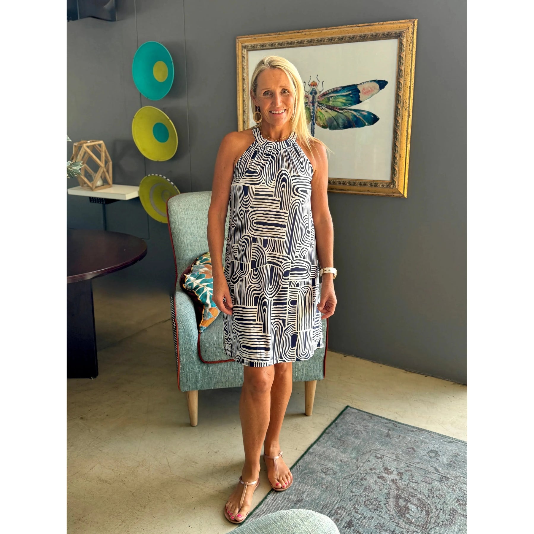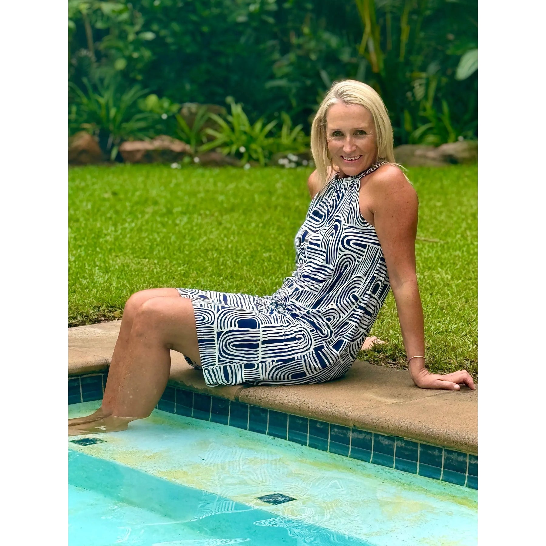 One of our most popular styles, The Shonel dress has a higher neckline on a band with stretch so can easily fit over the head. It cuts away from the shoulders and falls to the knee or just above.