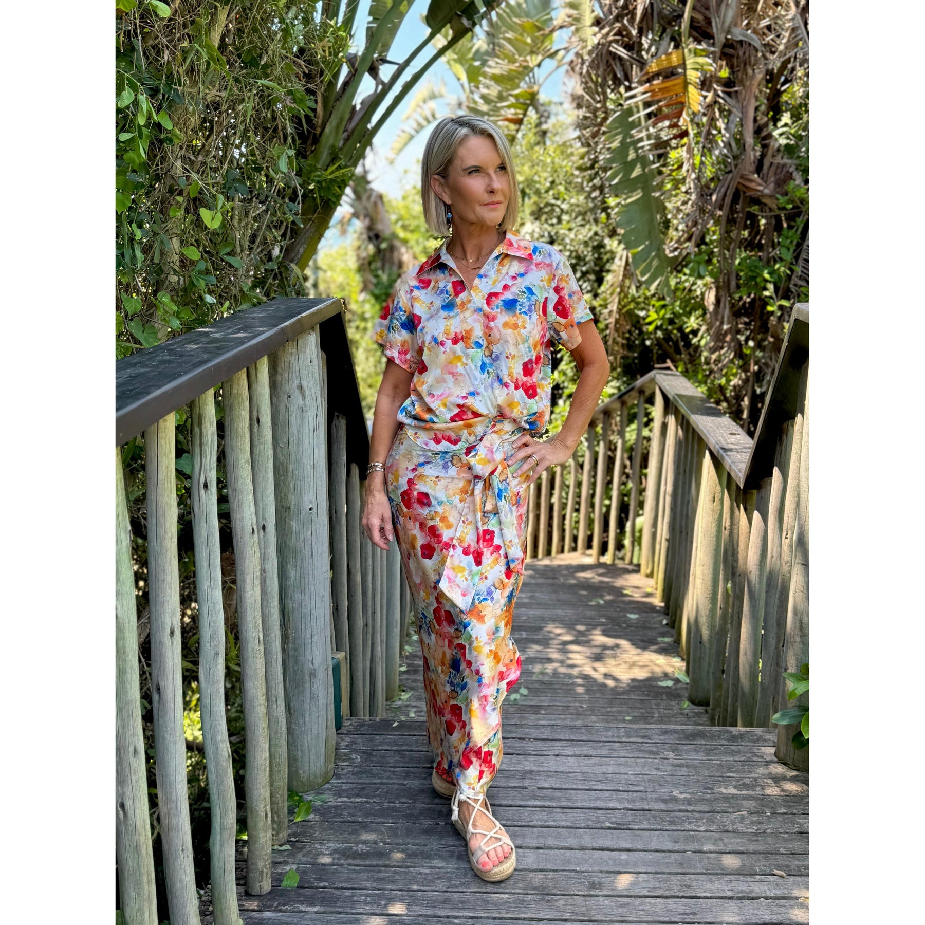 Jade is a calf length wrap skirt with front pleat detail